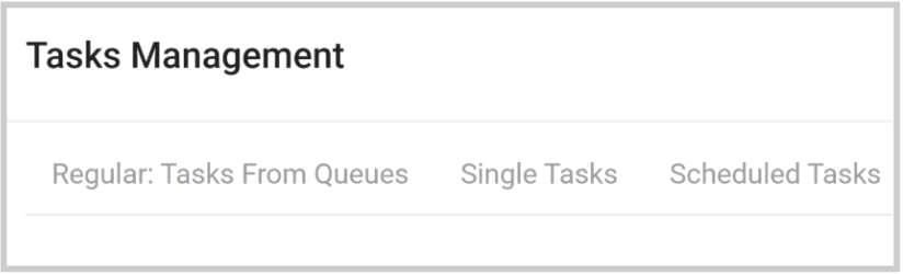 | Regular: Tasks from Queues | Single Tasks | Scheduled Tasks |