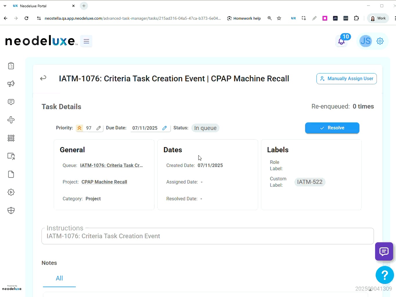 Users with ATM User role: Assigned tasks resolution interface only, by clicking the link in the task card in the Neodeluxe Sidebar. No access to the Scheduled Tasks tab.