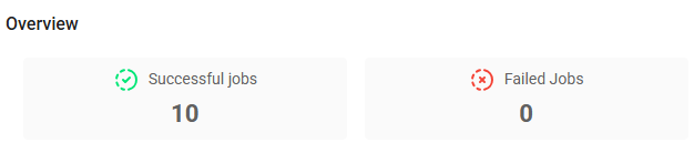 Visually represents the success and failure rates of your automated processes within the selected time range. This dynamic chart updates whenever the time range is modified. To view detailed information about a specific bar on the chart, hover the mouse over it to display a pop-up.