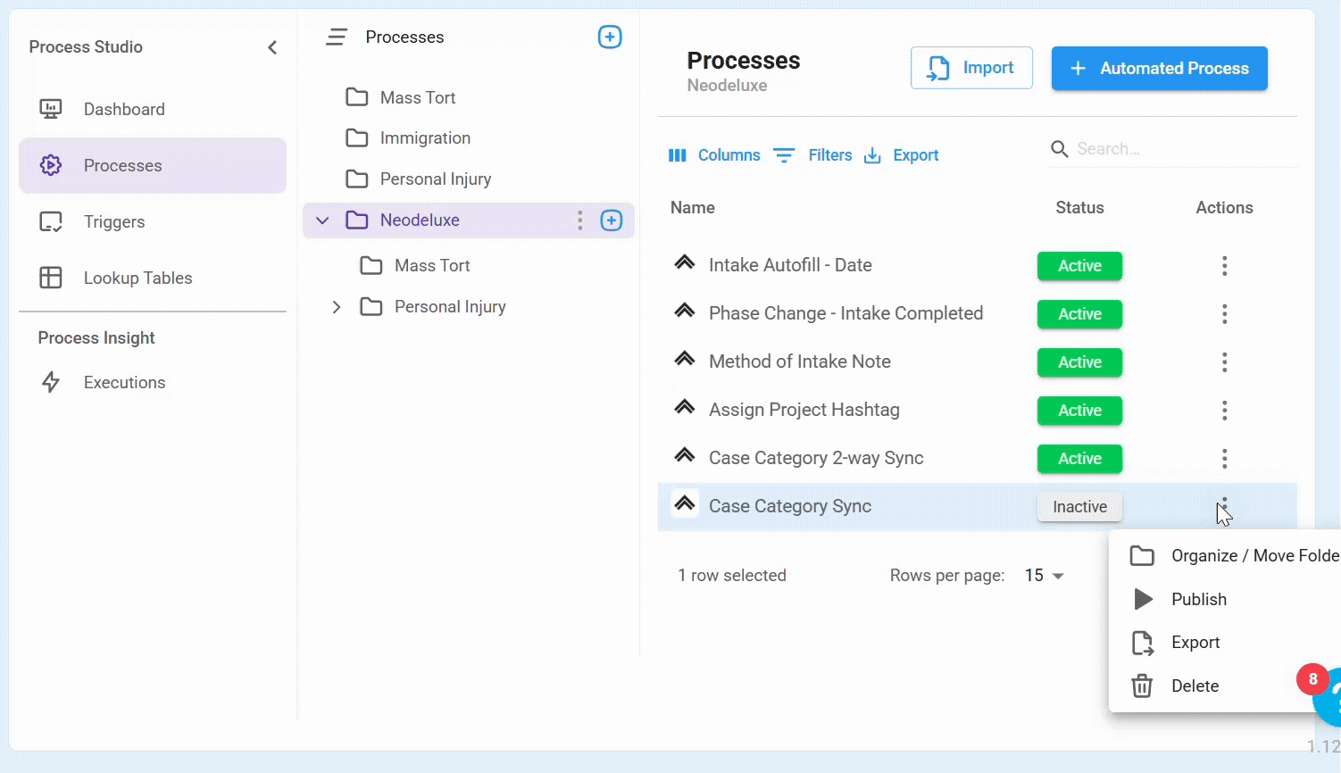 Many clients work across different areas of law—like personal injury, immigration, or mass tort—and use this feature to keep their processes organized by legal area. But you're free to structure folders in whatever way works best for your team.