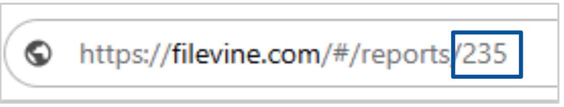 • To obtain the Filevine Report ID*, open the corresponding  saved report in Filevine and copy the number at the end of the URL.