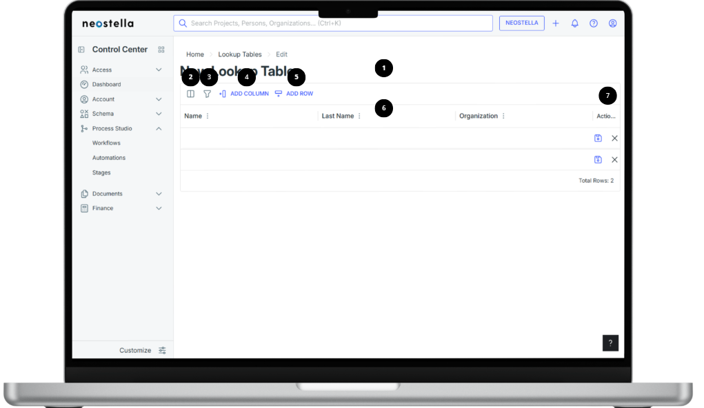 Rows represent individual records in the Lookup Table. Adding a row is useful when inserting small or specific amounts of data manually.