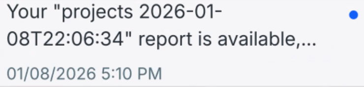 - When the Report processing time exceeds 6 seconds, the status is set to Pending. Once the Report is completed, the user receives a notification in the