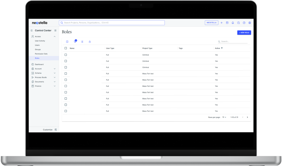 Roles are designed to reflect the firm’s internal structure and operational design. Once defined, they become available within project workspaces for assignment.